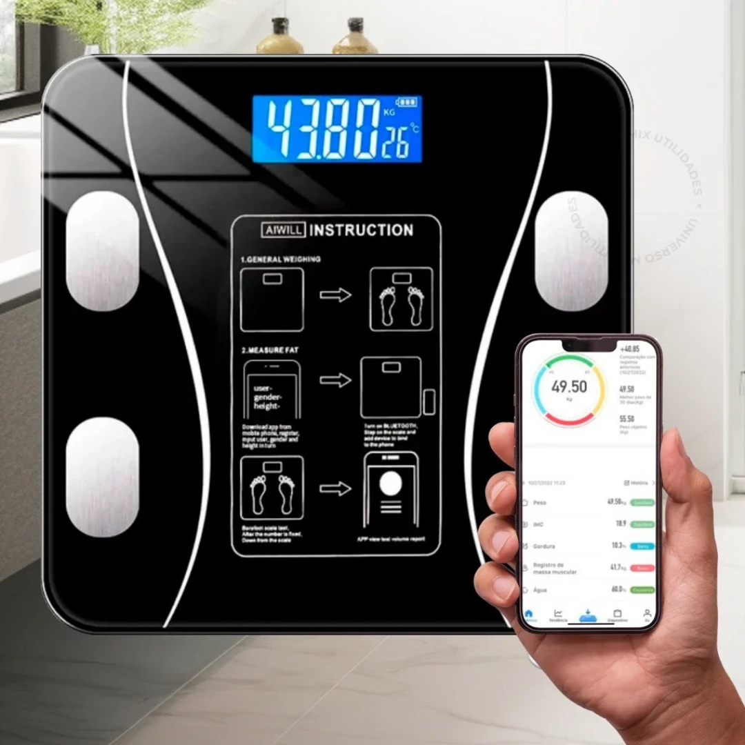 Balança Bioimpedância Digital com Bluetooth - Resultado Pelo Celular 📱⚖️