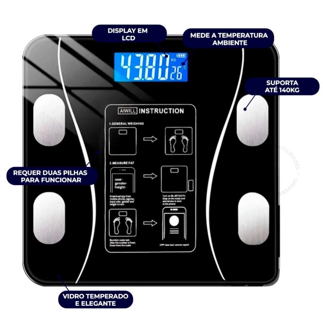 - Facilidade de Uso : Basta subir na balança e deixar a tecnologia trabalhar por você. Todos os dados vão direto para o seu smartphone!